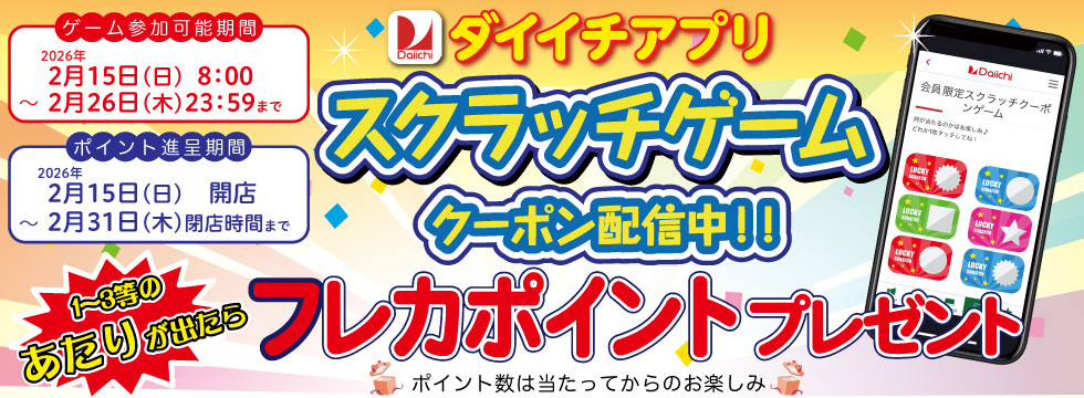 【アプリ会員限定】スクラッチゲームクーポン配信中!!