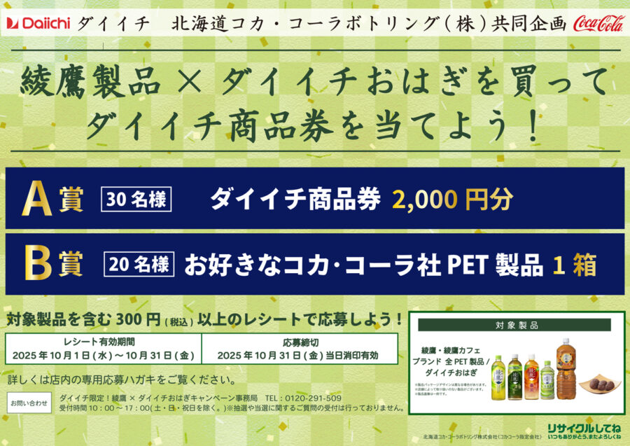綾鷹製品×ダイイチおはぎを買ってダイイチ商品券を当てよう!