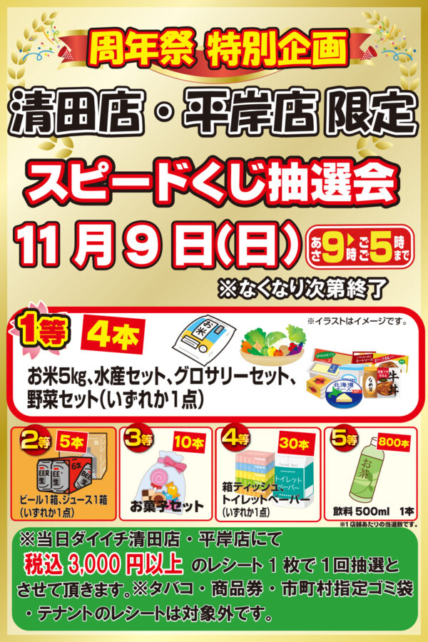 【清田店・平岸店限定】スピードくじ抽選会